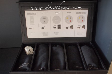 書桌前的設備一應俱全,連三腳轉兩腳插頭也有,而且不同的AV線也有,還圖文並茂,非常清晰。