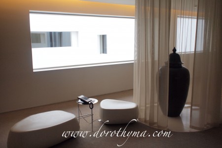 推開大門,感覺截然不同。外觀沉實,踏進酒店後,第一個感覺是富現代感。要到大堂,先要行經一條長廊,一邊在這條長廊走著,有點像在走貓步,好型!