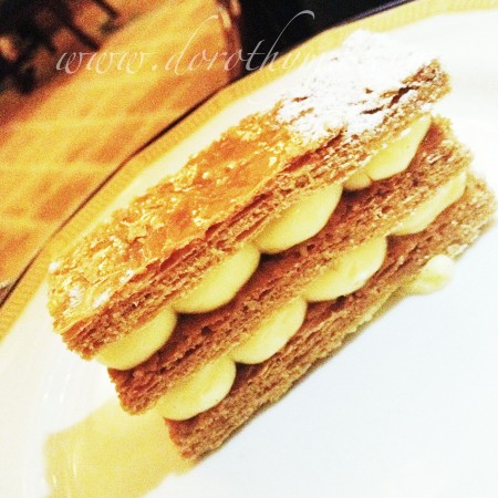 有朋友從上海回香港兩星期,一班朋友跟她晚飯過後,拉大隊去半島酒店Lobby Lounge吃甜品。這個拿破崙非常好吃,絕對要推介!一層層的酥皮,牛油香四溢,酥香鬆脆,中間的filling幼滑無比,讚絕呀!
