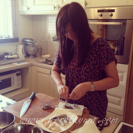 好了~拍攝的一點點花絮,開始時有點不習慣,畢竟這麼多人看著我煮東西嘛!一邊拍一邊想起數年前,也為某本星級食譜工作過,有了相關的經驗,知道Demo過程,不能太快手,否則苦了攝影師,最後在兩小時內完成了一個主菜及甜品的Demo,期待雜誌刊登之日。