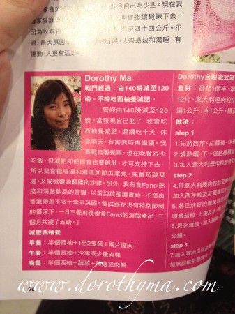 寫了blog多年,一直也有傳媒approach去做訪問試食,卻一一推掉,其實我是蠻低調的。直到7月號的Cosmopolitan有專題講減肥,跟編輯朋友在電話閒聊起來,不經意地跟她分享了一些以前我的減肥點滴及食譜,還登了半版出來,可算是我的第一次啊!
