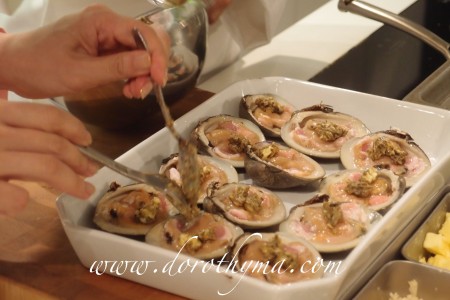 當日楊崢跟Charmaine先示範海藻奶油魚子醬烤蜆伴蕎麥餅~