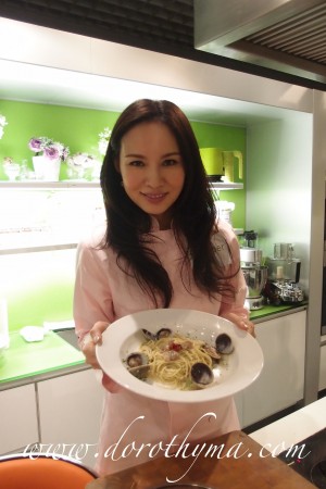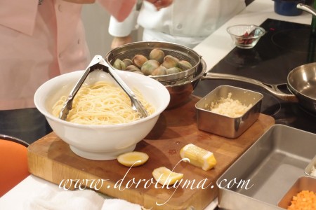 早在七月頭,Citysuper跟楊小姐辦了一次Cooking Demo,她跟Citysuper的行政總廚Charmaine合作,即場示範了兩道星級食譜的煮食方法。兩道菜包括:英國倫敦<Theo Randall>的鮮蜆香蒜番茜意大利粉及美國拉斯維加斯<JOËL ROBUCHON>Claude Le Tohic的海藻奶油魚子醬烤蜆伴蕎麥餅。