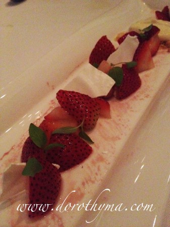 因為太飽的關係,只點了一個Strawberries salad,微酸的士多啤梨,帶點basil的味道,蘸那幼滑的Vanilla Bavaroise吃,很不錯。