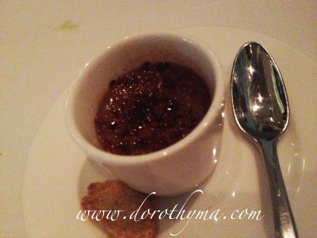 侍應還送了一小杯Coffee Creme Brulee給我們,這個Creme Brulee無論質感及味道,都是一流!咖啡味恰到好處,口感如絲般滑。吃完一小杯,真的想再encore呀~