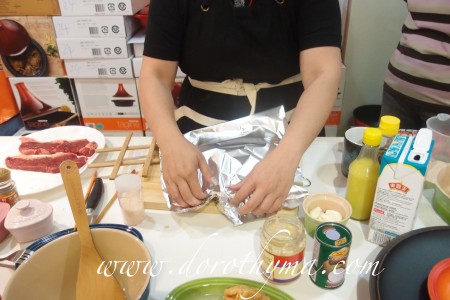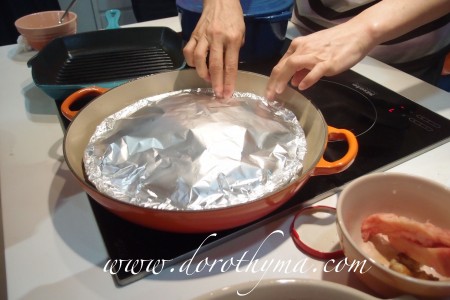 煮好後,界開錫紙,整個鍋上檯起菜,非常好看的說~這個蒸雞,肉質鮮嫩,肉汁也鎖緊在肉內,真估不到原來用這個Buffet Casserole來蒸食物,完全可將食物的水鎖緊。讚!