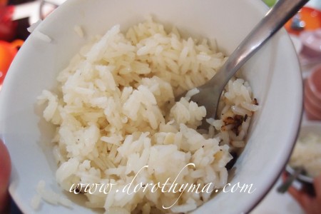 必先要說,這煲飯,當煮完打開蓋後,聞到是非!常!香!的雞油味,看上來沒有餐廳吃到的黃色(因為大多數餐廳都有加黃薑粉進去煮的),飯粒每粒都是雞油香,飯粒軟硬度適中,還有斑蘭葉及香茅的香氣,鍋底還有少量飯焦,真的很讚呀!