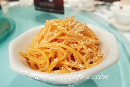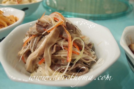 甜酸蕃薯爽 - 蕃薯切成絲,有點像酸蘿蔔,口感非常爽脆,都是開胃的冷菜。