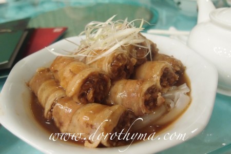 五華梅菜卷 - 是梅菜扣肉的變化版。很多人覺得扣肉很肥,女生們更覺得難以把扣人入口。這道五華梅菜卷,有點像金菇牛肉卷的做法,用了半肥瘦的肉片,包裹著甜梅菜,省去吃扣肉的肥膩感,女生們也可多吃幾件。