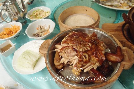 梅州手撕鹽焗雞 - 食法跟片皮鴨一樣,不同的是雞沒有片皮,卻用上手撕,每口都是肉,而且好嫩,又夠雞味,包著京蔥及薄餅一起吃。吃的時候,薄餅跟京蔥將雞的鹽味中和,好吃!!