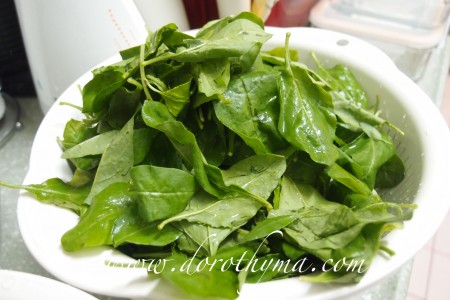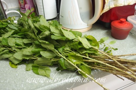 1)將枸杞葉摘下,保留枸杞莖,並切半,洗淨菜及莖。(小心枸杞莖部有刺,建議第一次做的時候,要帶手套。要將枸杞葉摘下,要由枸杞的底部,用手一次過向上勒上去。)