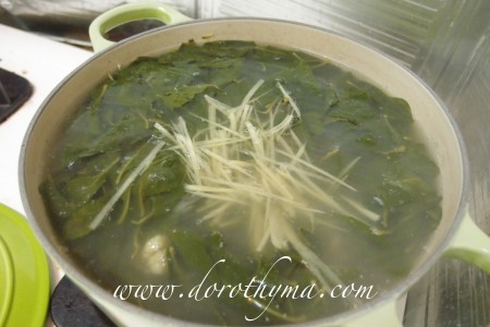 3)一小時後,加入豬潤及薑絲,再煲半小時,最後下鹽調味即成。
