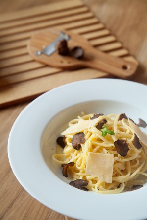 示範菜式:牛肝菌松露湯、生牛肉他他伴白松露片、白松露燉蛋、白松露手造蛋麵