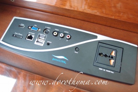 工作桌旁的插頭也很齊全,usb插頭也有兩個,連接駁iPod / iPhone的專用插頭都有,非常impress!!