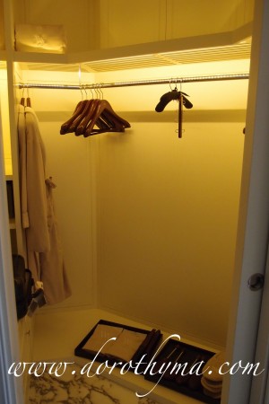 衣帽間是Walk-in的~掛著的那件浴袍用料很滑,穿起來真的很舒服,是我穿過這麼多酒店提供的浴袍最好的一件!