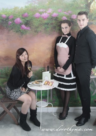 這一天,來到好友Ron的Rondavy Cafe,Ladurée的公關帶同兩位化身成Ladurée店員的Model來到,手拿香檳及馬卡龍,真的是太驚喜了吧!兩位Model一身法式裝束,看到他們,真的有點像去了巴黎Ladurée總店的感覺。這次的驚喜遠比起一眾藝人只收到馬卡龍,來得更特別呢~謝謝公關的細心安排!