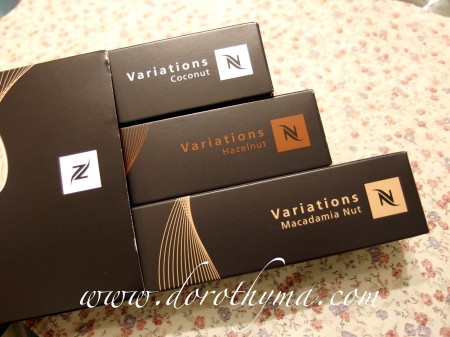今年的聖誕限定咖啡膠囊跟去年一樣,有三款的,包括:榛子、椰子及夏威夷果仁,是在聖誕月最常見的果仁。