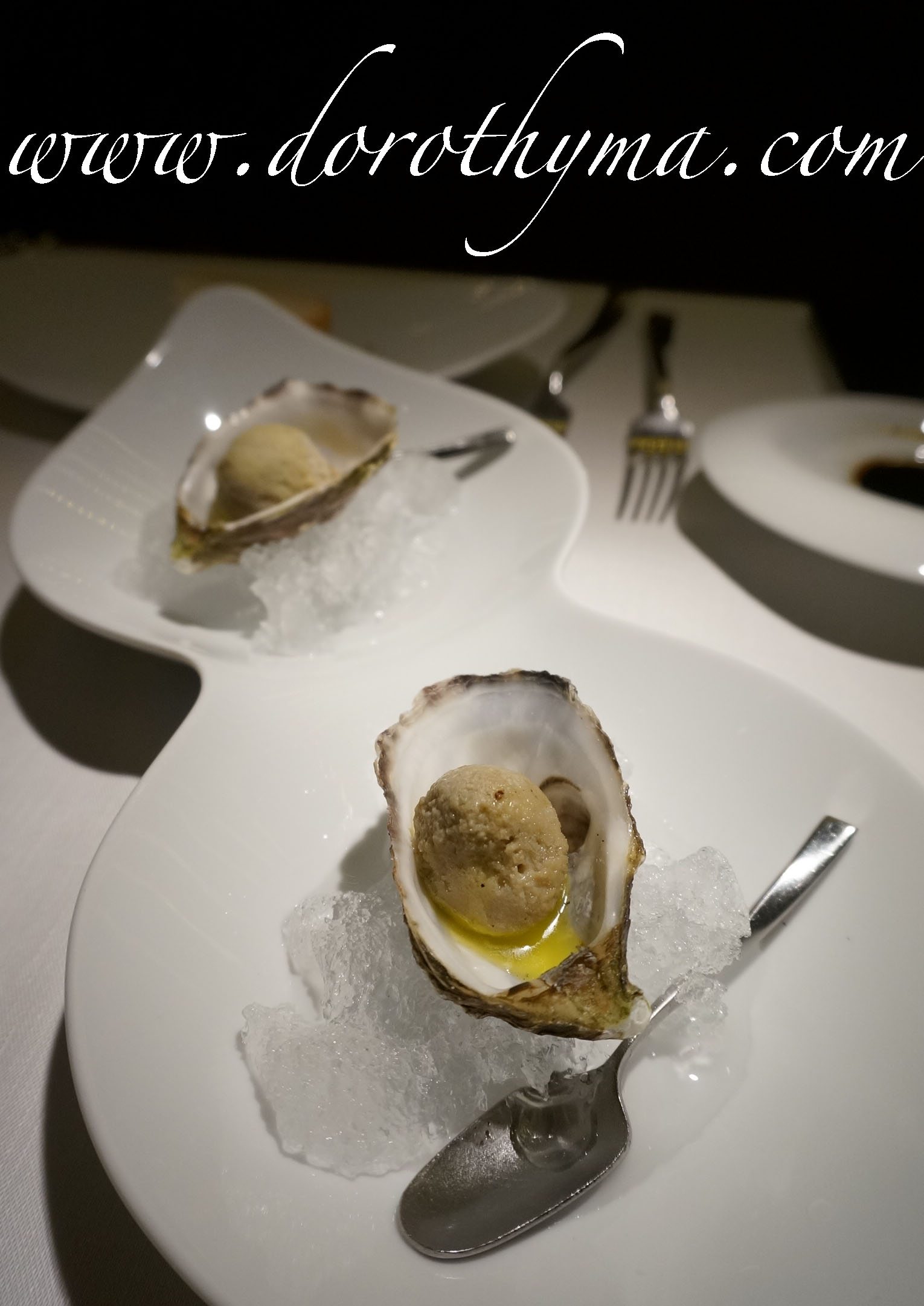 餐前小吃先來一道名為Alfredo’s oyster,這道生蠔還未上場,我早已在其他博客的面書看到照片,大家甚為喜歡這道菜,到我今次親身見到這道菜的真身,終於明白為何大家對其如此著迷。Chef Alfredo利用來自意大利的生蠔打成蓉再做成綿密的雪芭,蠔味濃郁且非常鮮甜,當中更夾雜著幼細的蠔肉,以此證明乃是真材實料之作。如此有趣美味的菜式,我不客氣的足足吞下兩隻。