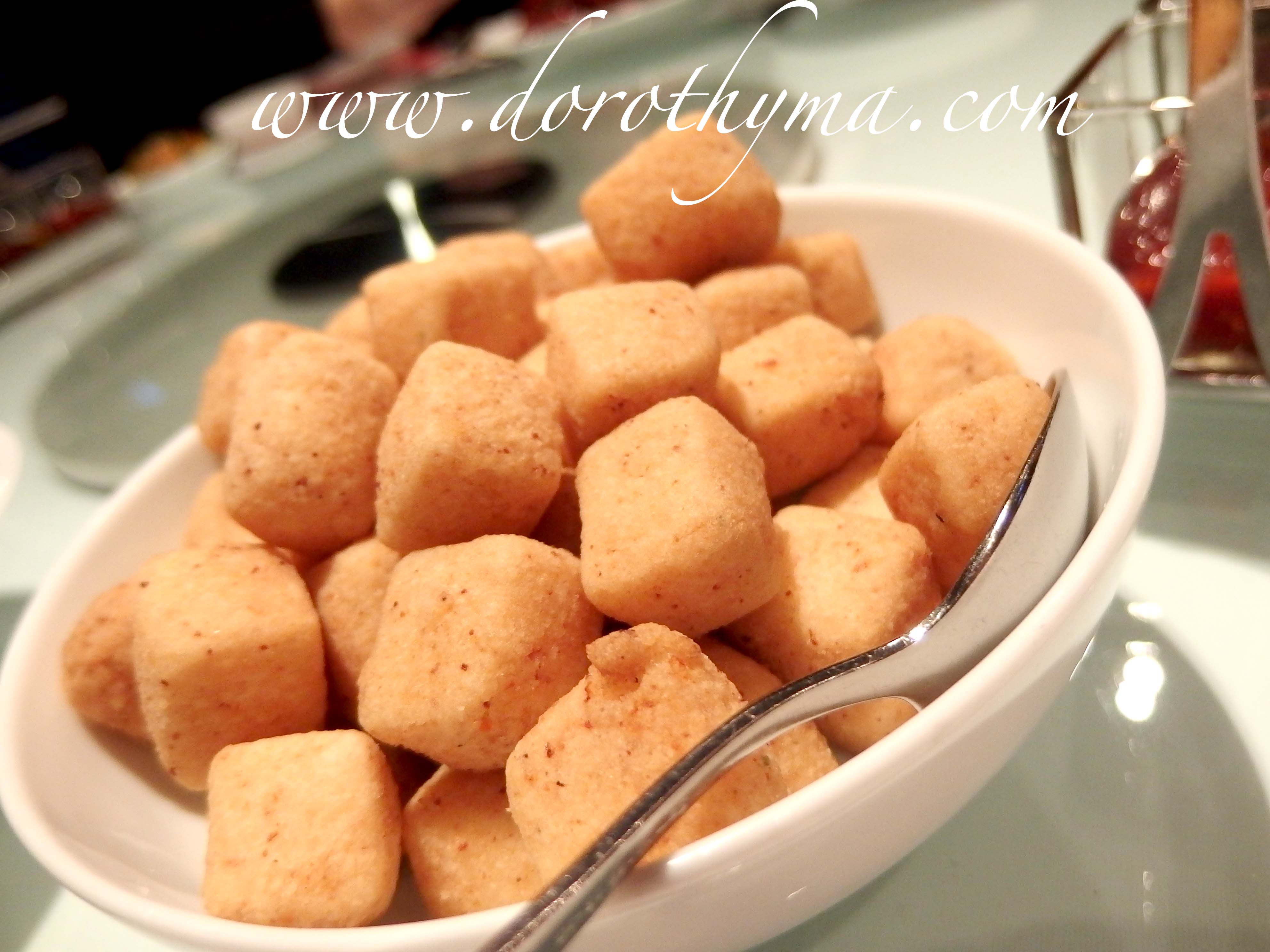 看看菜牌,竟然發現有糖不甩,你怎會想到在酒店的中菜會吃到如此地道的中式甜點呢?帶點薑味的丸子,加上椰絲花生,具另一番風味。