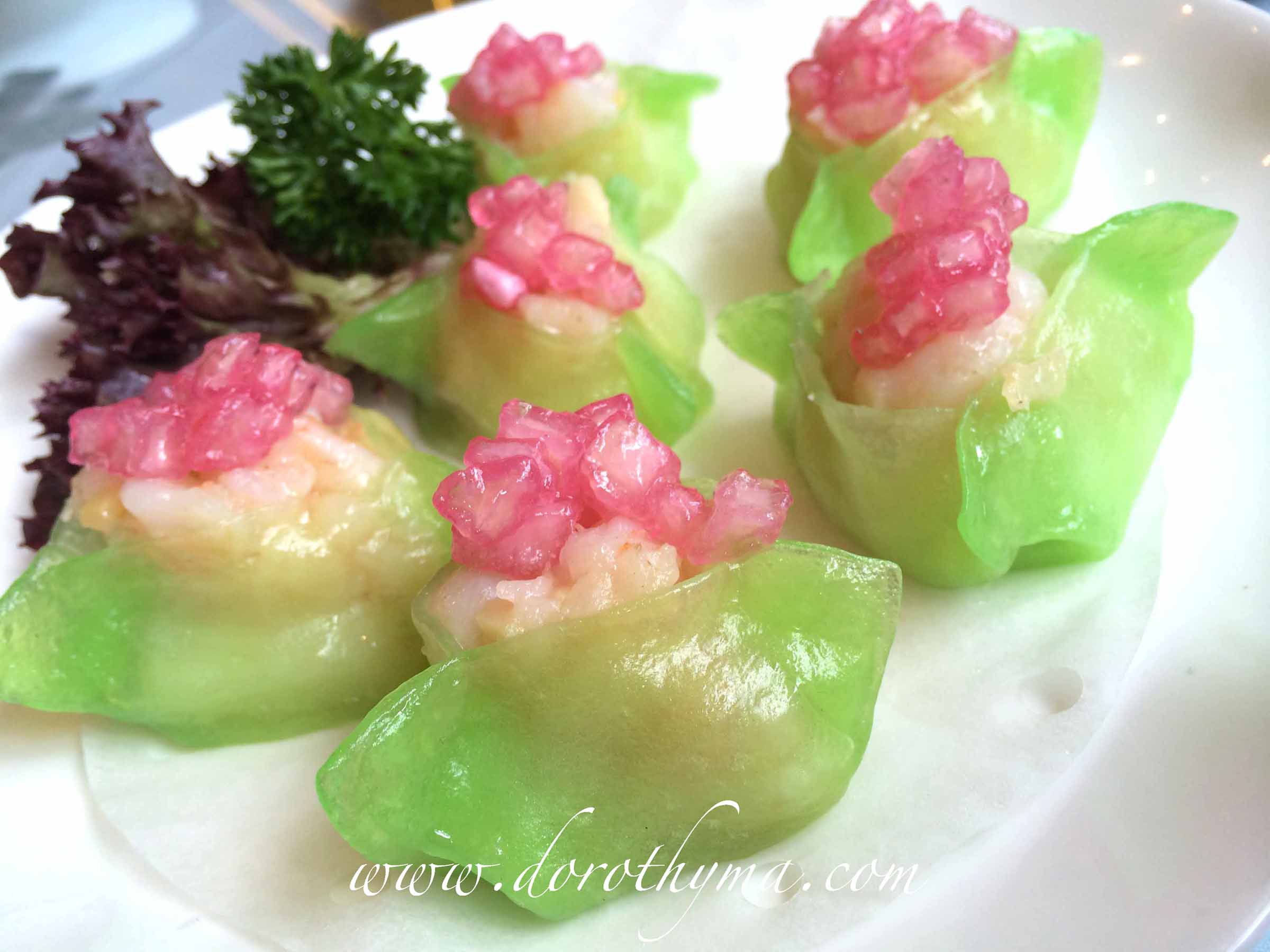 「番石榴帶子餃」賣相精嫩,綠撞紅的配搭很鮮艷。帶子餃上的幾粒像番石榴肉的東西,真的是用石榴肉打成汁,再造成石榴肉的樣子,試了一粒是相當清的果味,跟甜美的帶子餃一起吃,食味甚佳。