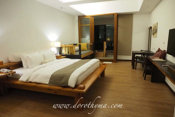 這家旅館於2015年2月開業,合共有28家客房,分別有5種房間類別。這次被安排入住的是河谷客房,面積大約有50平方米,空間感十足,旅館房間以原木設計,色調柔和。房間的傢俱以檜木打造,難怪甫踏進房間已隱若聞到一室檜木香氣。