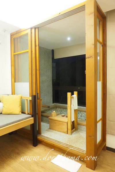 私人風呂夠深,整個人坐下,剛好泡到頸的位置,很完美,全身也得以放鬆。