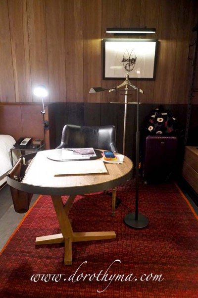 這一次被安排入住的是精采客房,面積約有37平方米,空間感不算多,但勝在房間的規劃上很實用。房間的燈光較一復的酒店昏暗,蠻浪漫的,設計以紅銅、原木、皮料及織品為主,充滿復古風。床邊那華麗的水晶吊燈,配合梳化旁的座地燈及書桌燈,那份時尚及華美感交織出來一點也不庸俗。