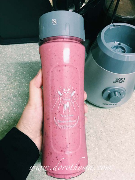 也因品牌為2016渣打馬拉松的其中一個贊助商,特別和知名插畫家小克,合作推出別注版聾貓水樽。這天我用聾貓水樽來做我喜歡的什莓Smoothie,有粉紅色托底,為在跑馬拉松的聾貓加添幾分色彩。
