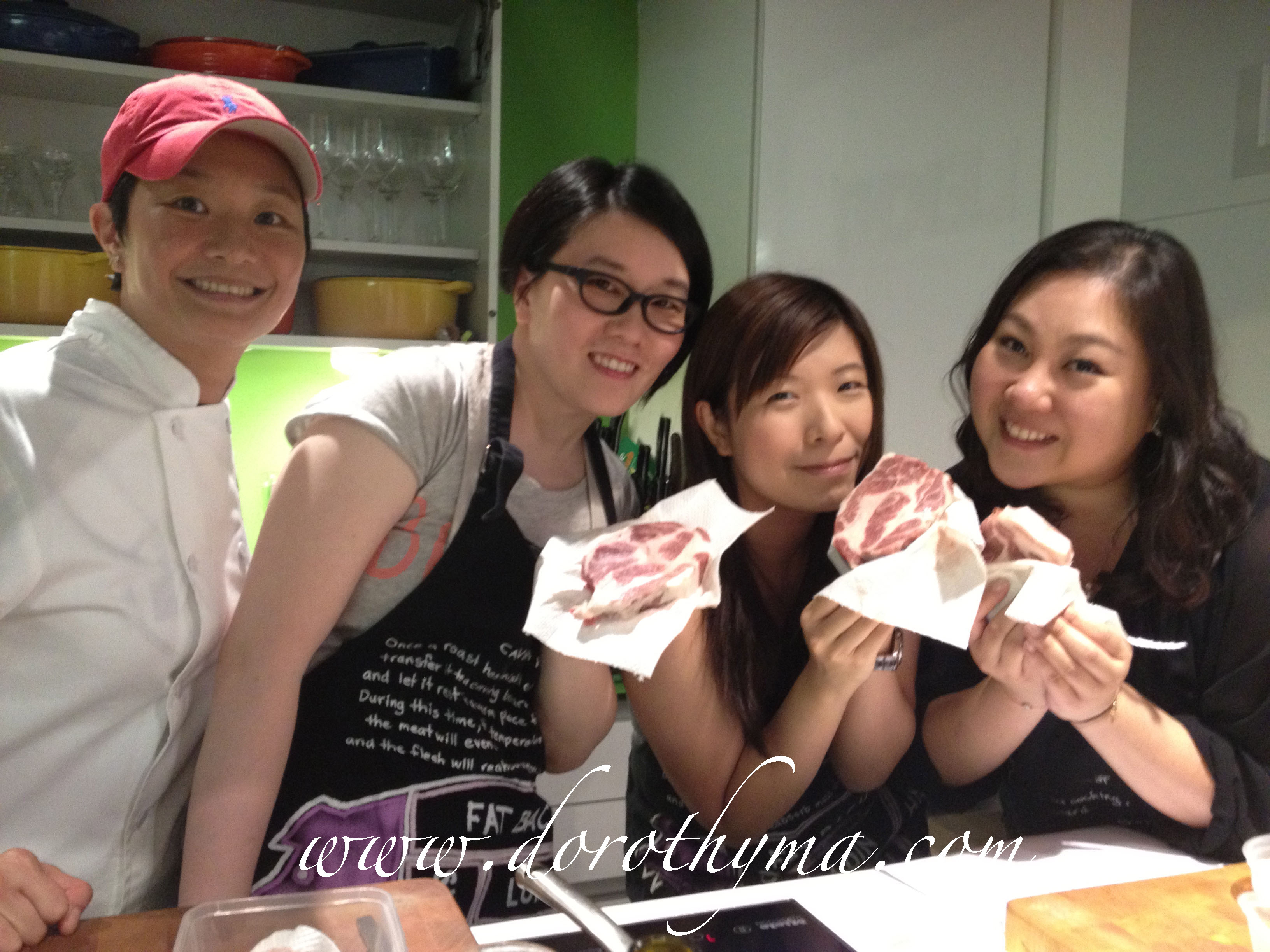 自從上次二月去過Citysuper的Super Culture Club上過Charmaine的課之後,一直都想再跟她學廚。我是打從心底裡覺得她很Talented,很簡單的食材,她三兩下手腳,就可以煮出一道好吃的菜。 6月初的時候,又有一次機會,跟一班朋友來到Super Culture Club跟Charmaine上課,特別要在這裡謝謝Charmaine及Citysuper的安排~這天晚上我們學了一道很適合夏天吃的菜式,就是煎沖繩豬排配杏脯橙汁。沖繩AGU豬排,肉味濃有油香,肉質爽口彈牙,絕對不會跟西班牙Iberico豬排比下去! 這次的豬排做法非常簡單,先由Charmaine介紹一下今次的食材及做法~ 首先豬排要吸乾表面的水份,再先撒一些Smoked Sea Salt在其中一面,燒熱煎pan,下油先煎已撒鹽一面的豬排,再撒一點Smoked Sea Salt到另一面豬排,待豬排煎至金黃色就可反轉煎一面。 同時間可將洋蔥碎及茴香絲加入,在旁邊炒一會,再加入一些Smoked Sea Salt及Spanish Paprika,繼續將茴香炒至軟身。 同時間也要將豬排的邊位也要煎一煎~ 然後順序加入鮮榨橙汁、芥末、杏脯果醬及一小塊無鹽牛油~ 加入所有醬料後拌勻,再加蓋煮一會即成~ 好了~看完示範,就到我們去煮。煮東西之前的動作,當然是拍照啦~今晚來得的都是朋友,這晚可不是一般的Blogger活動啊! 好了~以下這一塊是我煮的。哈哈!看起來,是不錯的啊! 製成品來啦!加上一點火箭菜沙拉在豬排上,整個擺碟都豐富多了~ 每次來這裡學煮東西,煮完之後的指定動作,一定少不了拿著自己的作品,滿足地拍個照吧! 這個豬排配杏脯橙汁真的超推薦給大家,在家裡也不難煮。說實在的,在我學完這道菜之後,我回家也煮了兩次,試過用不同的豬排也很不錯。這個醬汁真的很summer,吃完很refreshing,有一次我去朋友家煮飯,就是煮了這個豬排,他們用來拌意大利麵來吃,也很配呀~